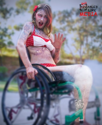 You have no idea how fun it is to dress up like She-Ra (’80s cartoon character, sister of He-Man). I’m usually known as “She-Ra in a wheelchair” (instead of just She-Ra) whenever I do it. It kinda pisses me off, but what do you do, the large glaring power chair cannot be ignored. I have never let it stop me though. Some of the happiest moments I’ve had since becoming paralyzed have happened while I’ve been dressed up. Also, check out the awesome Zombie Pool Party photo montage featuring three zombified women w/ disabilities. Read this entry