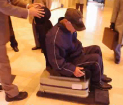 Japan aims to make people in wheelchairs more useful by creating a floor-buffing and cleaning wheelchair. I like wheelchair snowplows, but for some reason this pisses me off. I think it’s because the person in the wheelchair has absolutely no control of it. Talk about an invalid-ey feeling. – Tiff