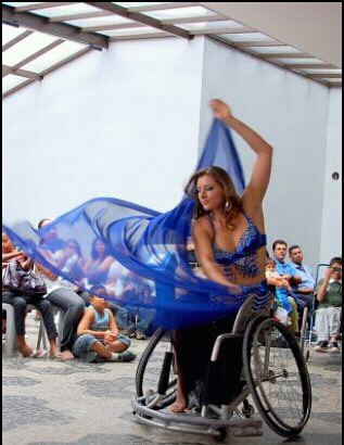 A woman bellydancing in a wheelchair. So pretty. Makes me want to buy a few scarves (or a hundred).